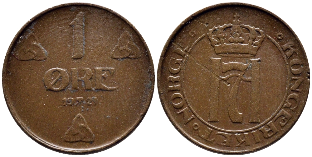 НОРВЕГИЯ 1 ЭРЕ 1921 KM 367 бронза 4387-114