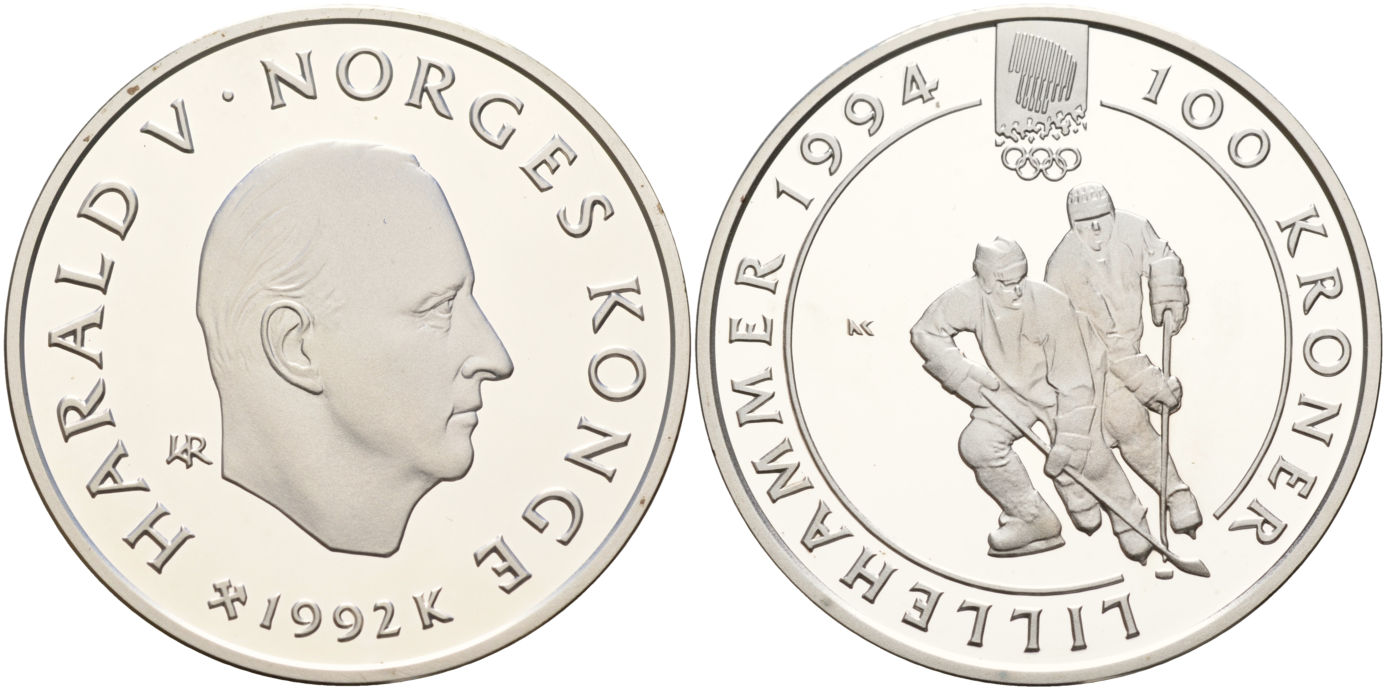 Норвегия 100 крон 1992 зимние Олимпийские игры 1994 года в Лиллехаммере, хокей KM 441 серебро PROOF 11-036-15