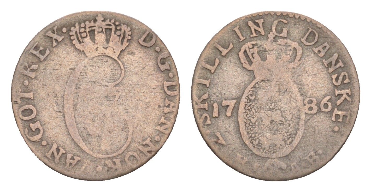 Норвегия 2 скиллинга 1786 HIAB, Кристиан VII (1766-1808) KM 255 серебро 413-2311