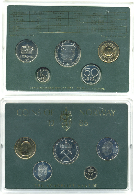 НОРВЕГИЯ ГОСНАБОР ИЗ 5 МОНЕТ 1986 UNC 06-081-11