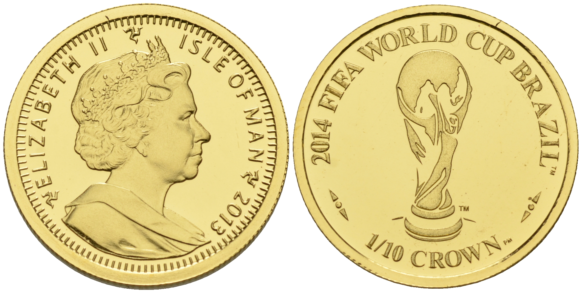 Остров Мэн 1/10 кроны 2013 Чемпионат мира по футболу в Бразилии KM NEW золото PROOF 00-806-74