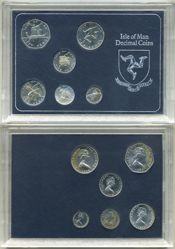 Остров Мэн набор из 6 монет 1976 в оригинальной пластиковой упаковке, с сертификатом, тираж 10000 экземпляров KM PS 9 (KM 33a-34a, 35.1a-36.1a, 39a, 40a) серебро PROOF 3-6-2-21