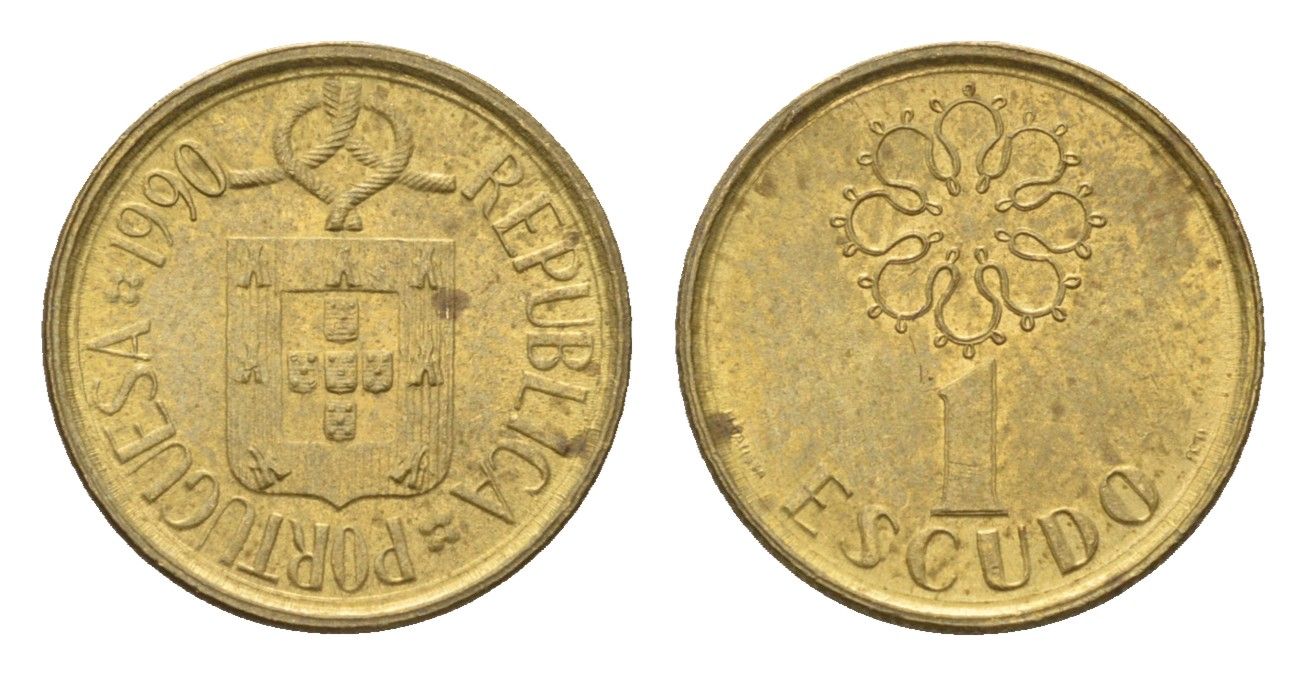 Португалия 1 эскудо 1990 KM 631 никель латунь 4674-761