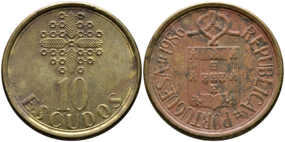 ПОРТУГАЛИЯ 10 ЭСКУДО 1986 KM 633 никель латунь 65-1126