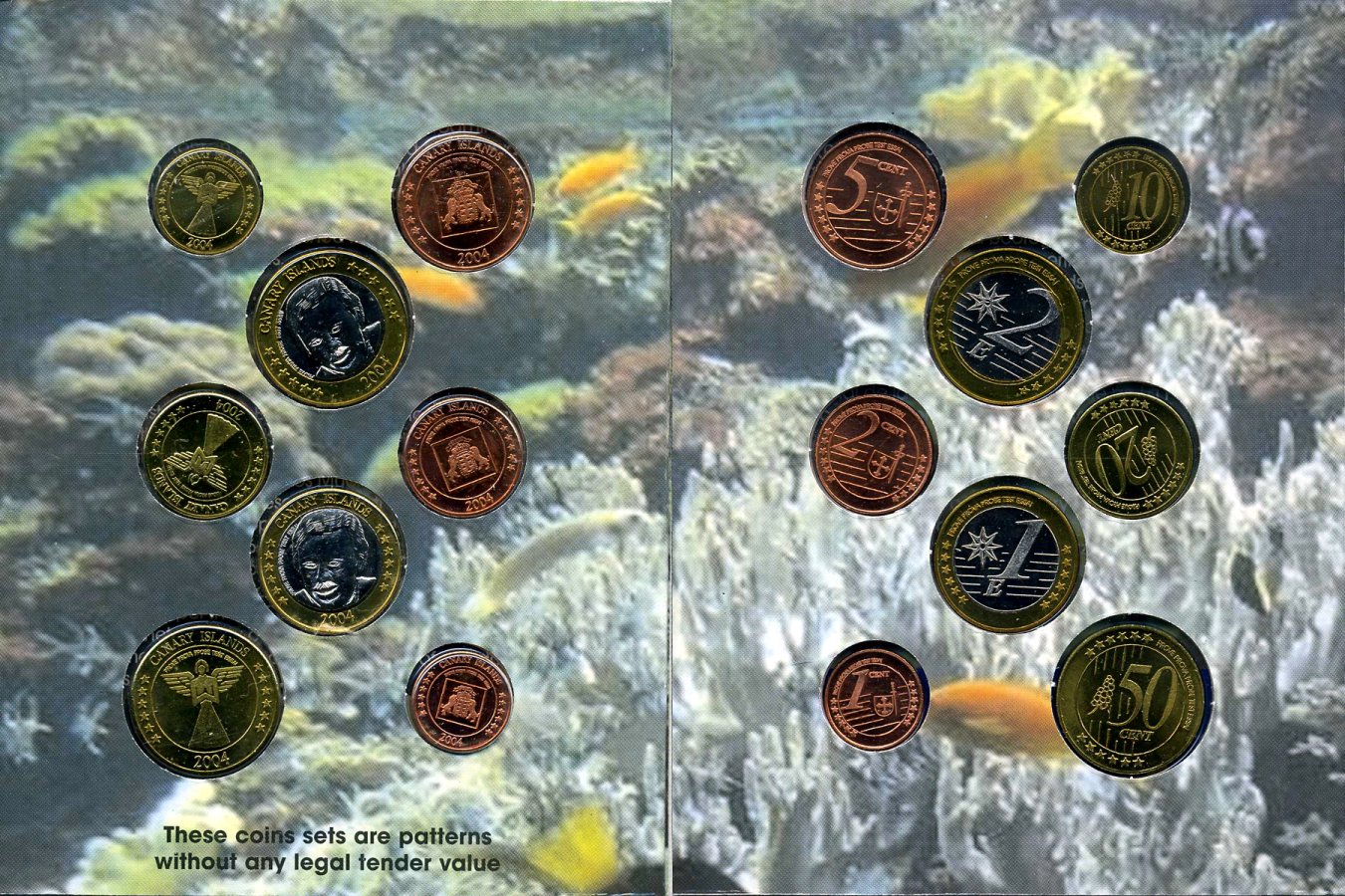 Канарские острова набор из 8 монет 2004 1 евроцент-2 евро, европробники, в оригинальном буклете UNC 00-00