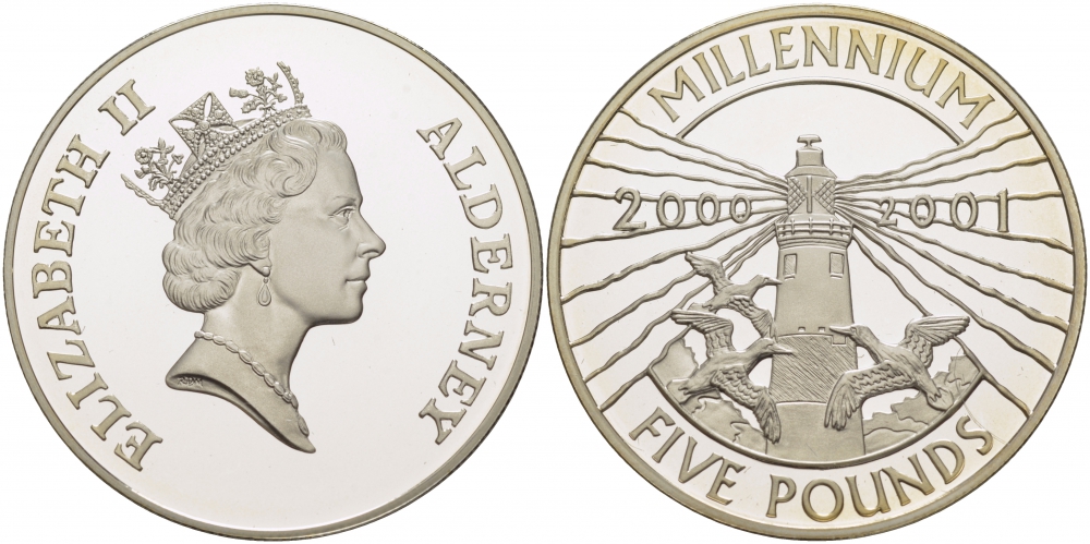 Олдерни 5 фунтов 2000 миллениум KM 26 серебро PROOF 1078-1-14