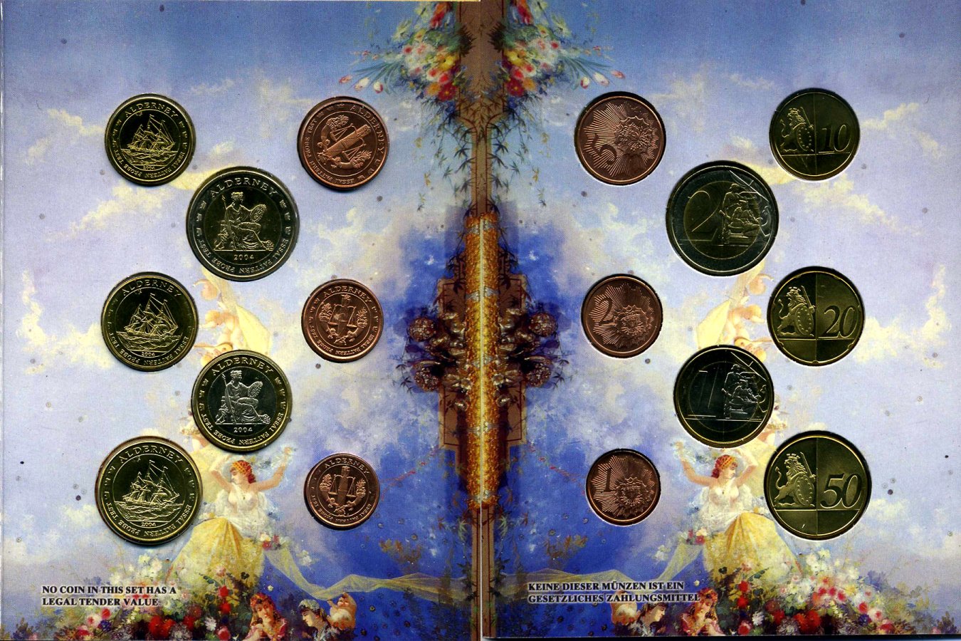 Олдерни набор из 8 монет 2004 1 евроцент-2 евро, европробники, в оригинальном буклете UNC 00-00-00