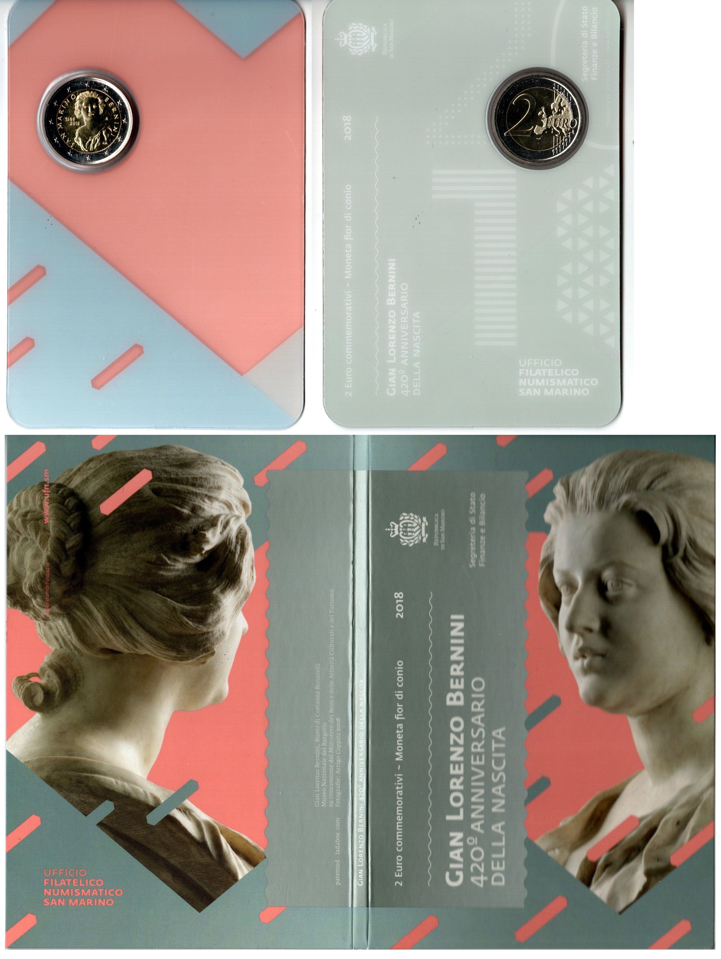 Сан-Марино 2 евро 2018 420 лет со дня рождения Джованни Лоренцо Бернини, в оригинальном буклете KM 571 биметалл UNC 8-2-01-21