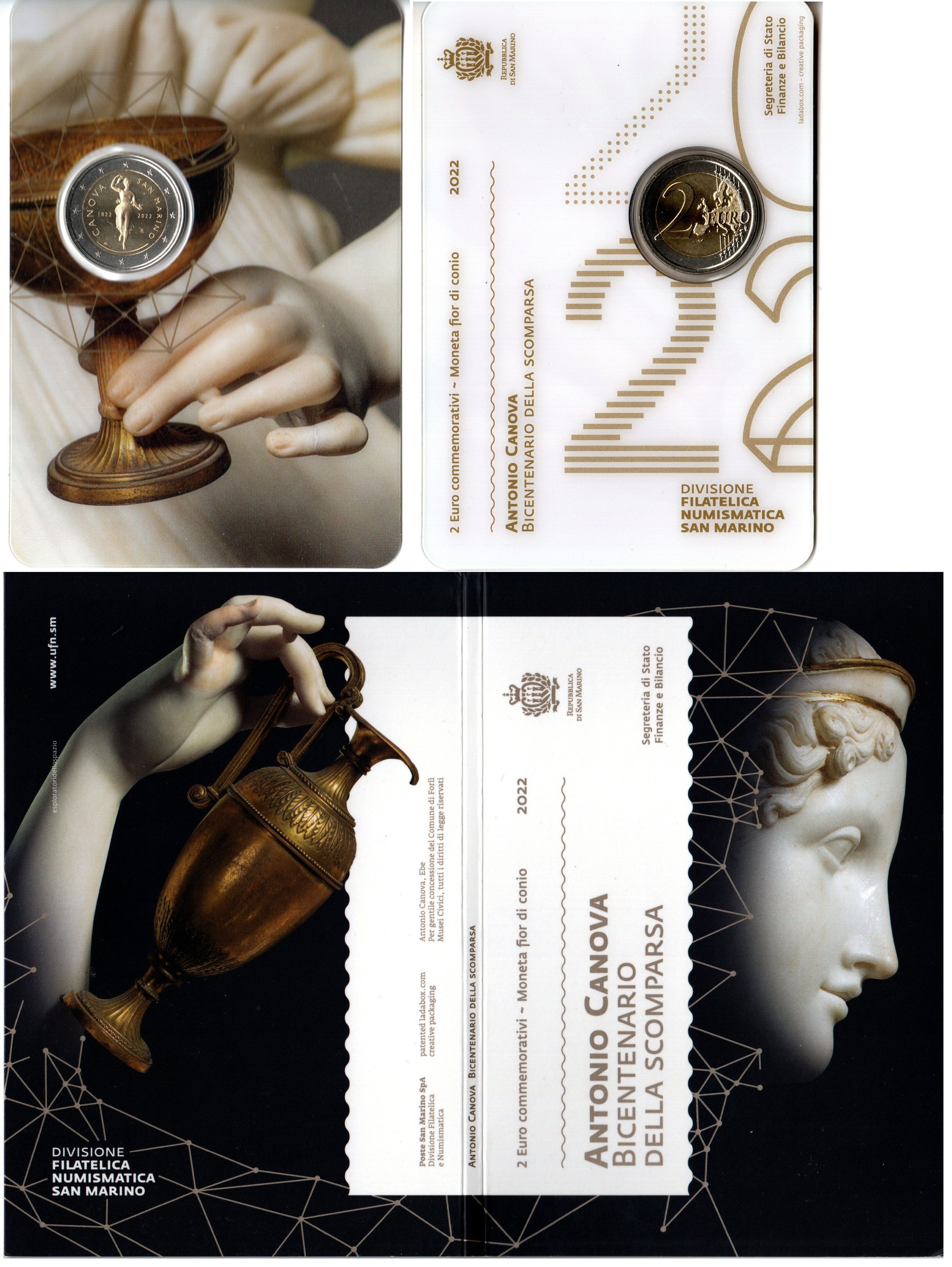 Сан-Марино 2 евро 2022 200 лет со дня смерти Антонио Кановы, в оригинальном буклете KM 611 биметалл UNC 8-2-01-30