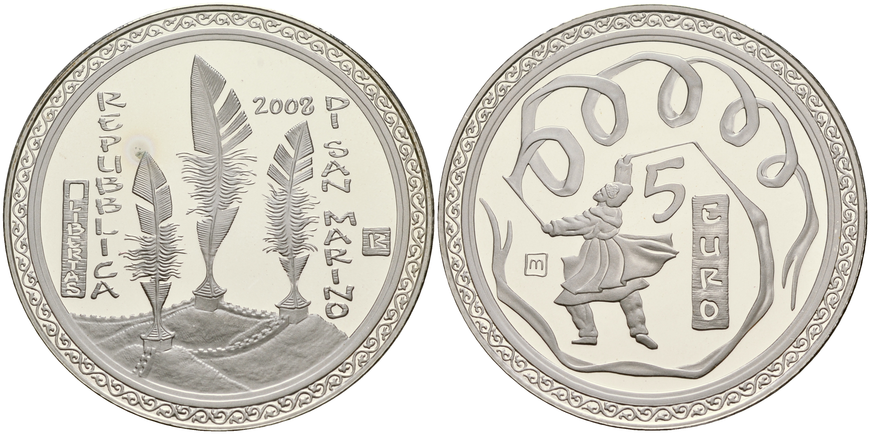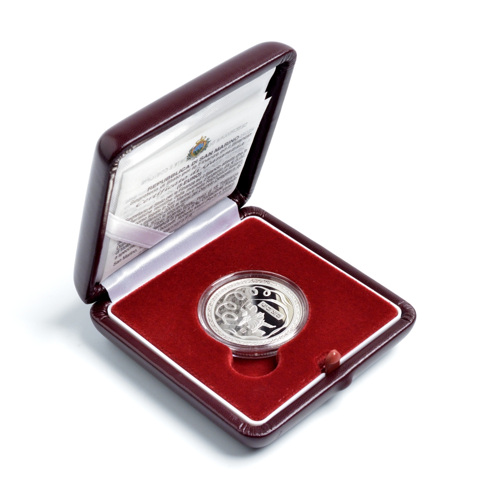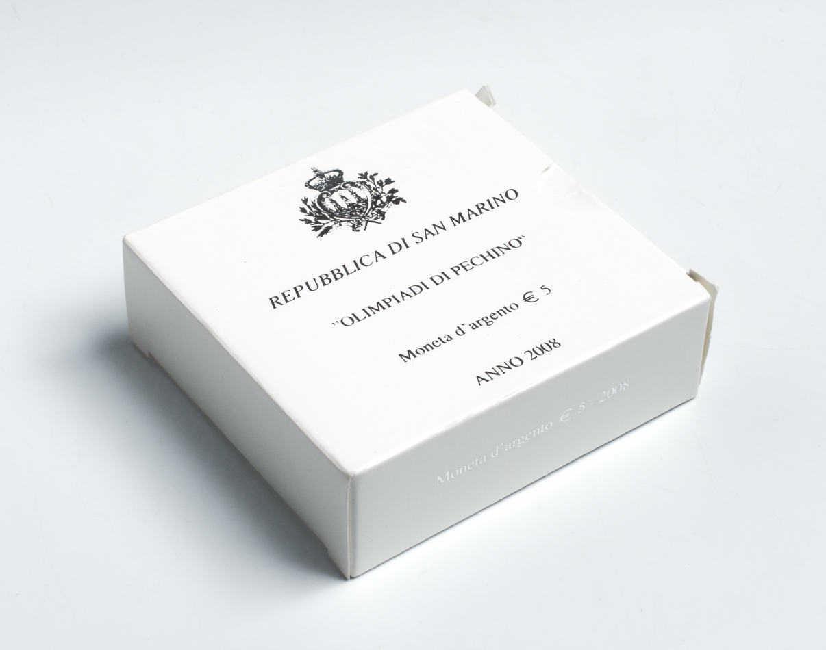 Сан-Марино 5 евро 2008 Олимпиада в Пекине, танец с лентами, в коробке с сертификатом KM 513 серебро PROOF 2-5-2-8