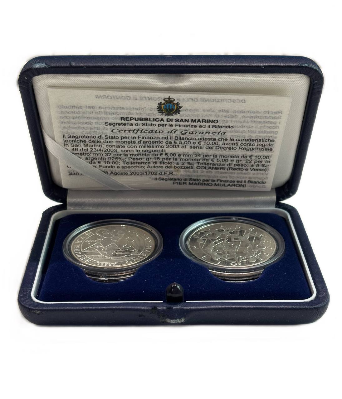 Сан-Марино набор из 2 монет (5 и 10 евро) 2003 XXVIII летние Олимпийские Игры, Афины 2004 KM 453 и 454 серебро PROOF 00-00
