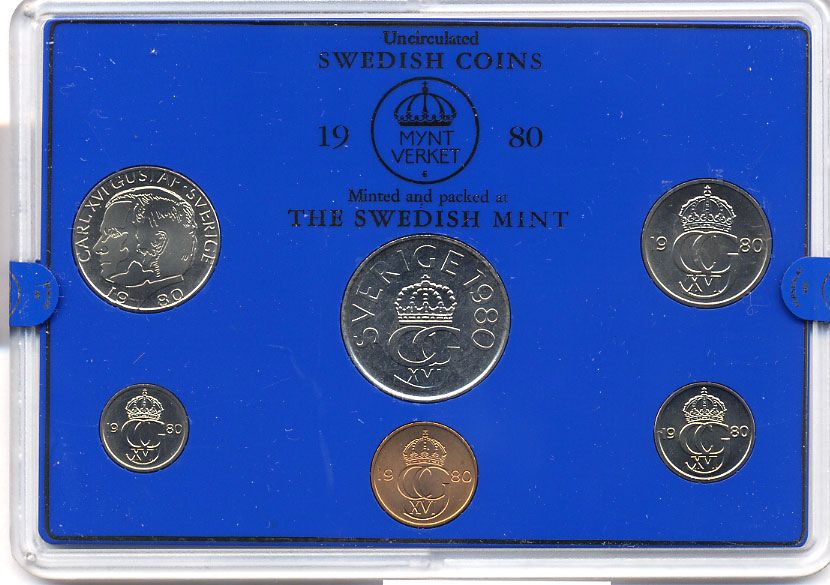 Швеция набор монетного двора из 6 монет 1980 в пластике, Карл XVI Густав (1973- ) KM MS15 UNC 4-3-6-136