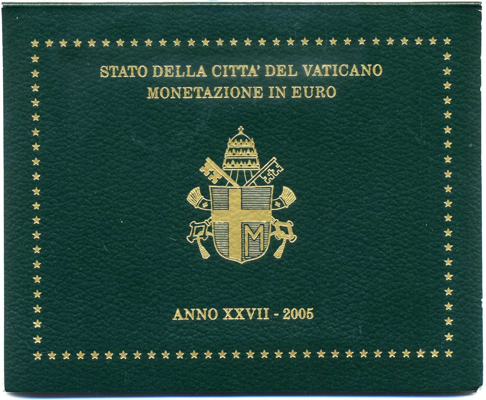 Ватикан евронабор из 8 монет 2005 Папа Иоанн Павел II, в оригинальном буклете KM MS 111 биметалл UNC 7-5-5-04