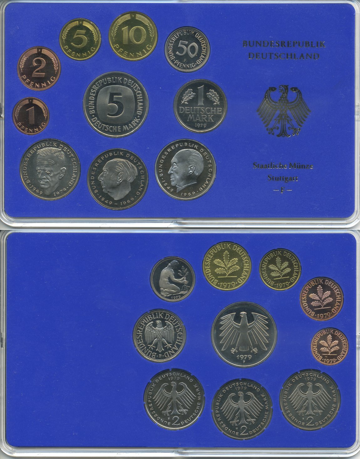 ФРГ набор из 9 монет 1979 F, официальный государственный набор, в пластике PROOF 3540-5-2