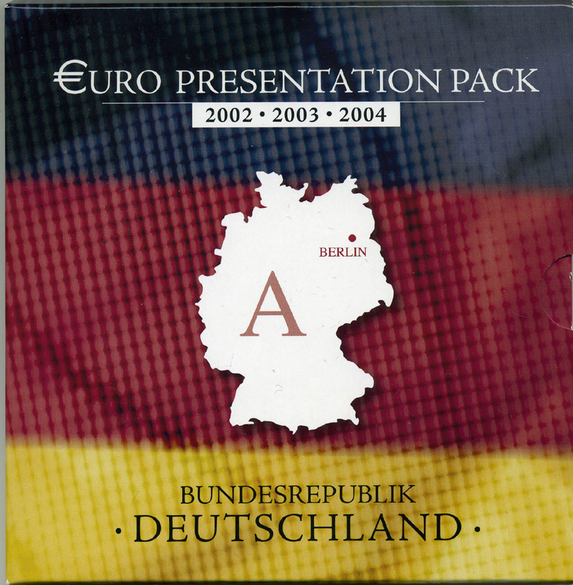 Германия набор из 3 евронаборов по 8 монет 2002-2004 буква A, мондвор Берлин, оригинальный официальный набор в картонном буклете UNC 2-5-1-11