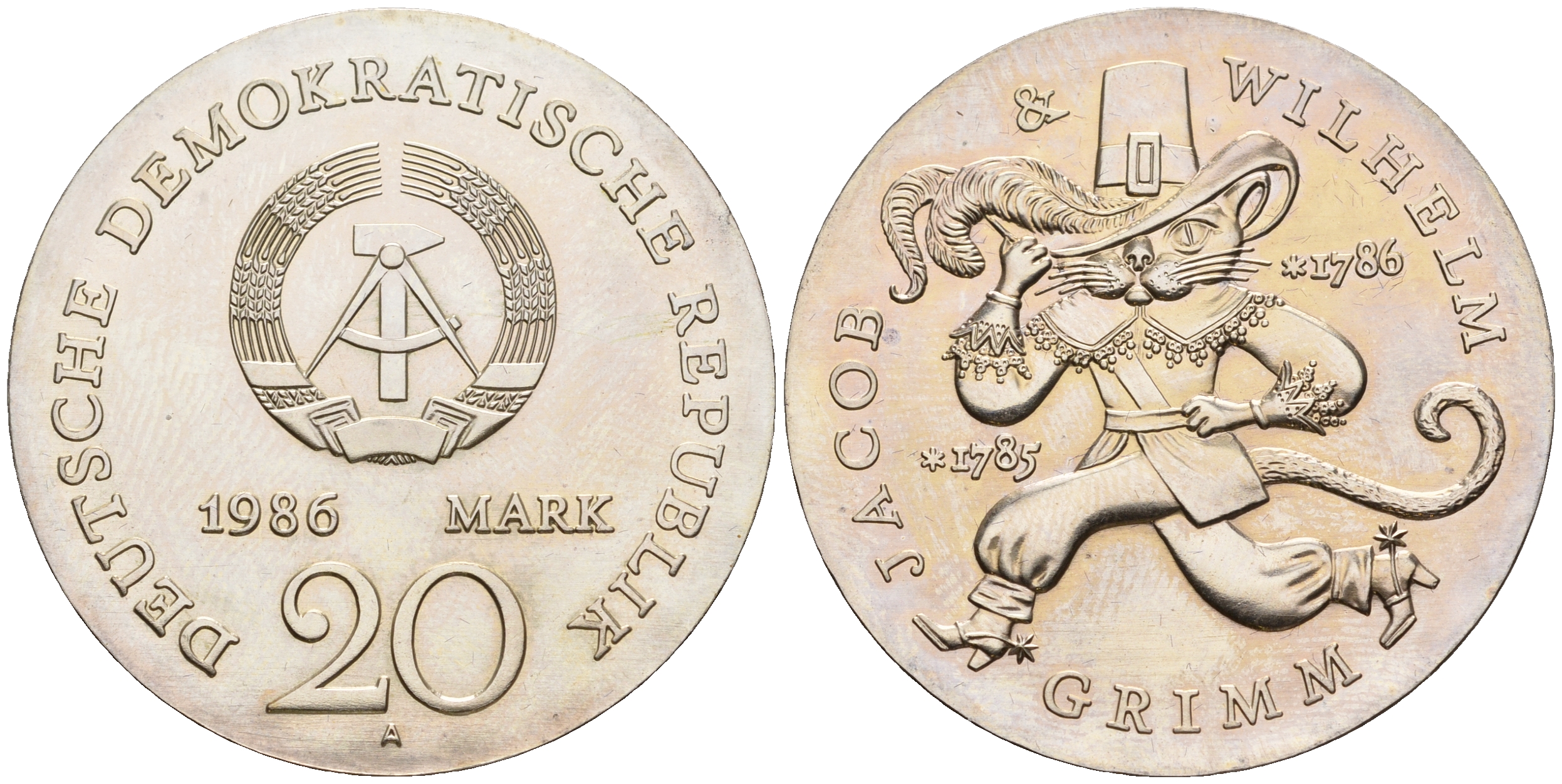 ---ГДР 20 марок 1986 A, 200 лет со дня рождения братьев Гримм, кот в сапогах KM 108, J. 1607 серебро UNC 00-820-51НовинкиАнтичность и раннее СредневековьеМонеты - ГерманияМонеты - ЕвропаМонеты - Австралия и ОкеанияМонеты - АзияМонеты - АмерикаМонеты - АфрикаМонеты - Россия, СССР, страны СНГ и БалтииБанкнотыАксессуары, ЛитератураОткрытки, карточкиАкции, облигацииЖетоны, Медали, ЗнакиМаркиКартины, декоративно-прикладное искусство