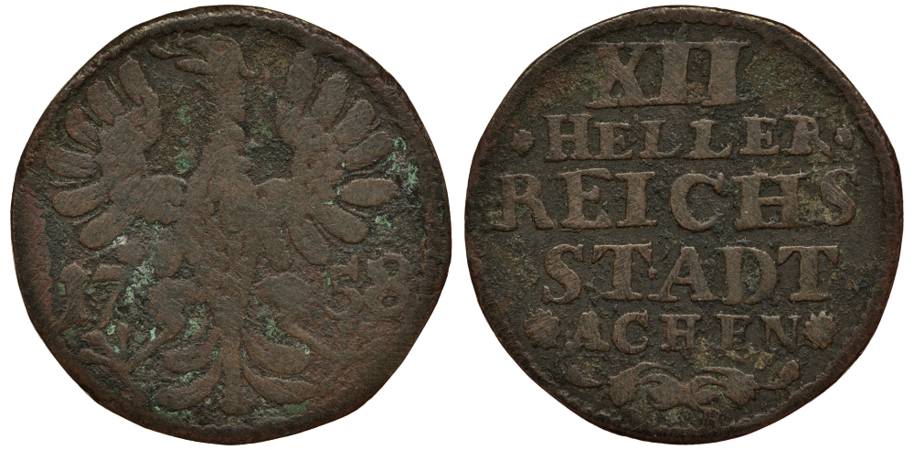 Ахен 12 геллеров 1758 MR KM 51 медь 4513-133