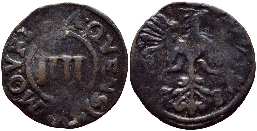 -Ахен 4 геллера 1638 KM 3 медь 560-851Другие землиАнгальт - AnhaltСаксен-Кобург-Гота - Sachsen-Coburg-GothaЮлих-Берг - JulichbergЭйхштадт - EichstattШтольберг - StolbergШпеер - SpeyerШварцбург - SchwarzburgШамбург - SchaumburgФранкфурт - FrankfurtСоест - SoestСилезия - SchlesienСаксония - SachsenБерг - BergПадерборн - PaderbornШаумбург - SchaumburgИзенбург - IsenburgПомерания - PommernМайнц - MainzОснабрюк - OsnabruckЭмден - EmdenЭрфурт - ErfurtВисмар - WismarВид - WiedМекленбург - MecklenburgРейс - ReussГослар - GoslarГанновер - HannoverАугсбург - AugsburgБавария - BayernБаден - BadenБамберг - BambergБранденбург - BrandenburgБрауншвейг - BraunschweigБремен - BremenВальдек - WaldeckВестфалия - WestfalenВормс - WormsВюртемберг - WurttembergВюрцбург - WurzburgГамбург - HamburgРосток - RostockГессен - HessenЙевер - JeverЛевенштайн - LwensteinЛиппе - LippeЛюбек - LubeckМансфельд - MansfeldМюнстер - MunsterНассау - NassauНюрнберг - NurnbergОльденбург - OldenburgПруссия - PreussenПфальц - PfalzРегенсбург - Regensburg