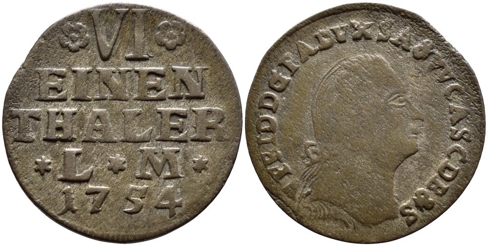Ангальт-Бернбург 1/6 талера 1754 LM KM 39 серебро 560-1644