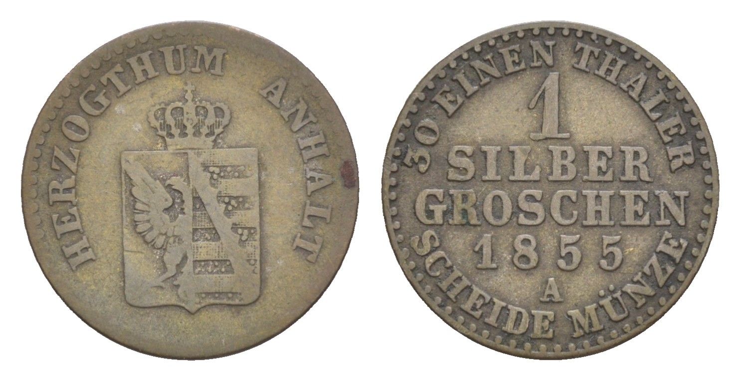 Ангальт-Бернбург 1 серебряный грош 1855 A, Александр Карл (1834-1863) KM 95, AKS 23, J. 69 серебро 1525-1132