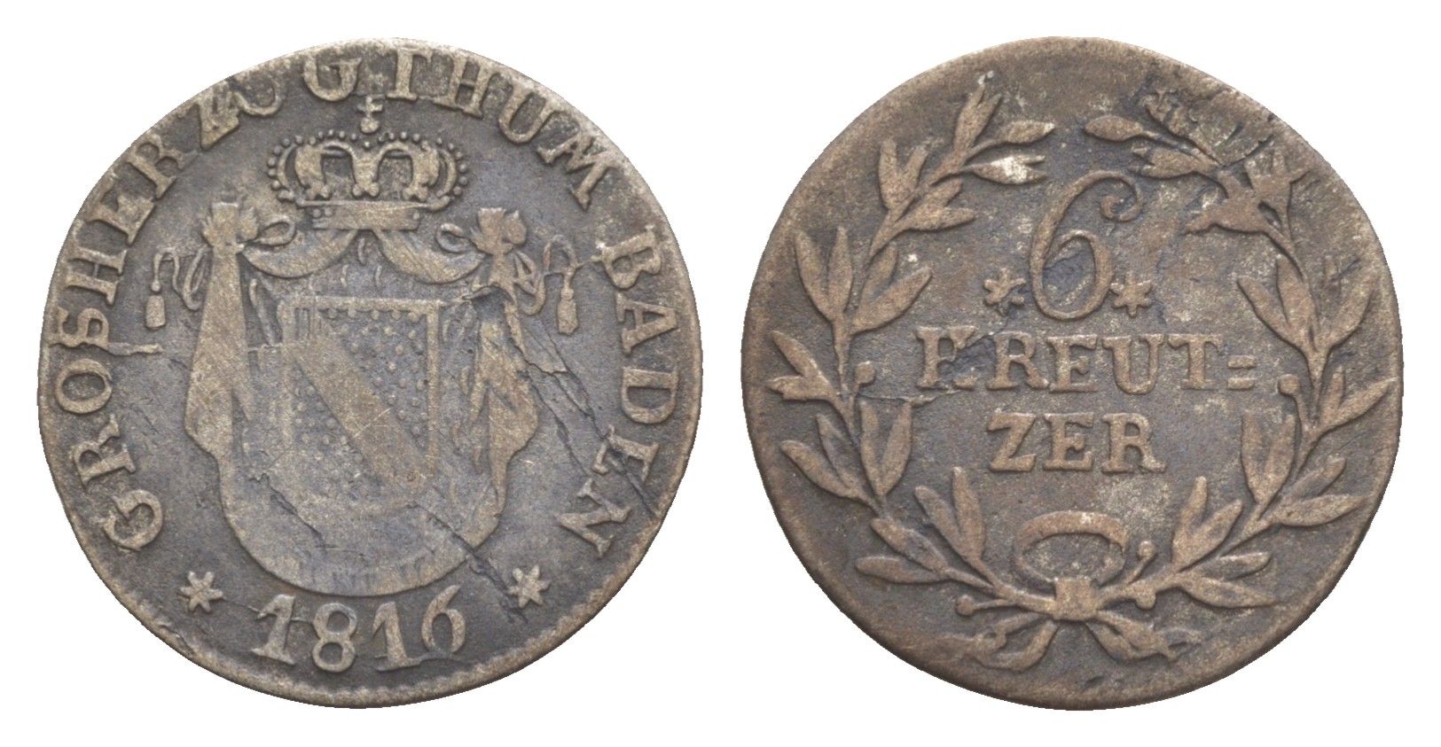 ---Баден 6 крейцеров 1816 Карл (1811-1818) KM 168 серебро 1518-323НовинкиАнтичность и раннее СредневековьеМонеты - ГерманияМонеты - ЕвропаМонеты - Австралия и ОкеанияМонеты - АзияМонеты - АмерикаМонеты - АфрикаМонеты - Россия, СССР, страны СНГ и БалтииБанкнотыАксессуары, ЛитератураОткрытки, карточкиАкции, облигацииЖетоны, Медали, ЗнакиМаркиКартины, декоративно-прикладное искусство
