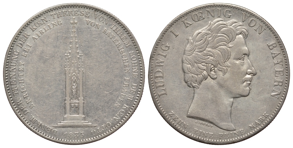Бавария 1 талер 1835 монумент матери короля Отто I AKS 134, Dav. 575, Kahnt 94, Thun 67 серебро 00-811-17