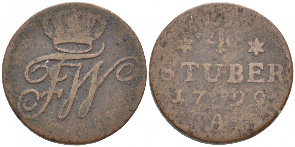 Бранденбург-Пруссия 1/4 штюбера 1799 A KM 272, Jaeger 6 медь 175-1224