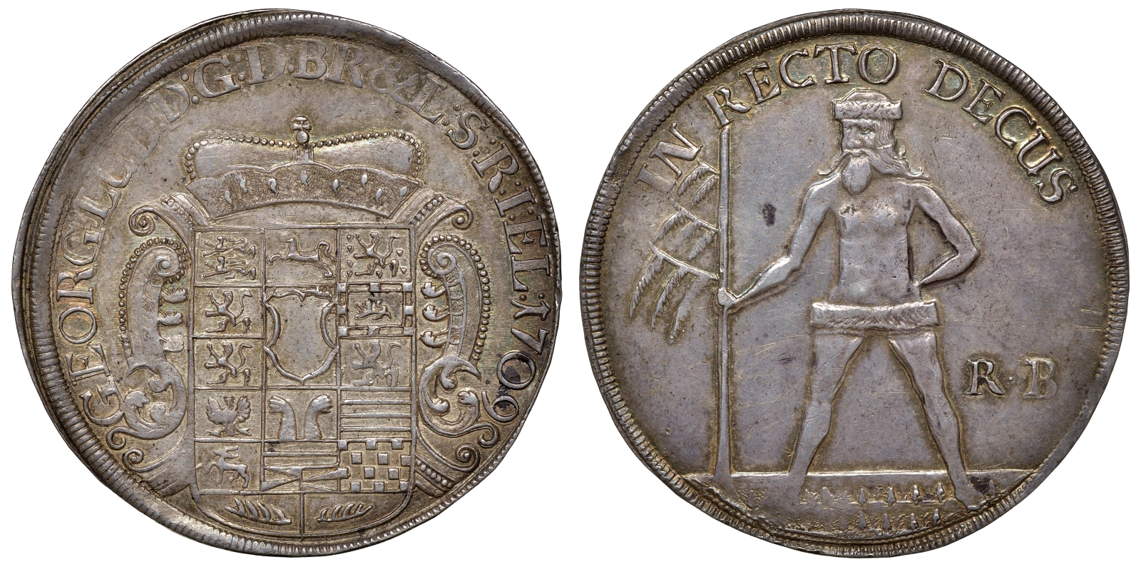 Брауншвейг-Каленберг-Ганновер 1 талер 1709 RB, Георг I, Курфюрст Ганноверский, великан, из коллекции F. Popken Dav. 2065, Welter 2143 серебро 10-017-09