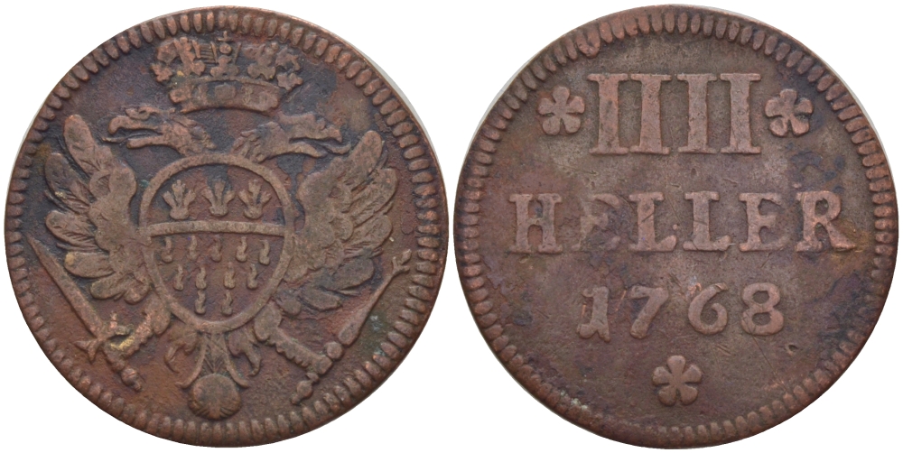 КЕЛЬН 4 ГЕЛЛЕРА 1768 СВОБОДНЫЙ ГОРОД KM 440 медь 100-334