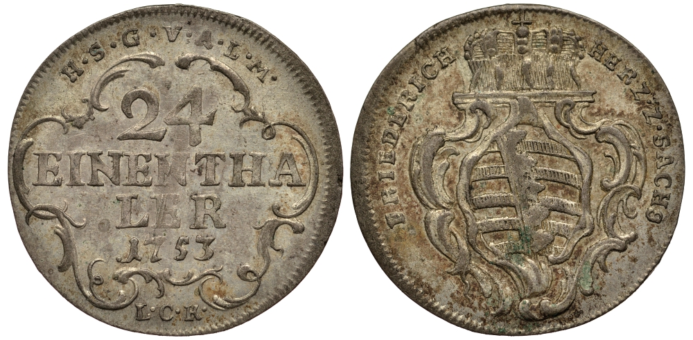САКСЕН-ГОТА-АЛЬТЕНБУРГ 1/24 ТАЛЕРА 1753 LCK, KM 16, Steguweit 244 серебро 413-2422