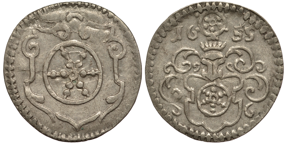 Эрфурт 3 пфеннига 1655 городской выпуск KM 44 серебро 1517-1111
