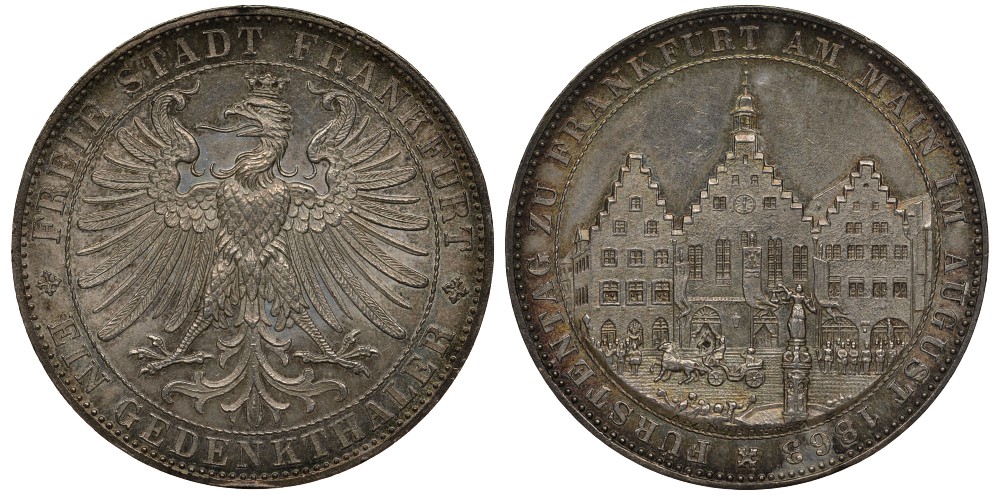 Франкфурт 1 талер 1863 ассамблея KM 372, AKS 45, Jaeger 52, Thun 147, Kahnt 172, Davenport 654 серебро 00-815-72