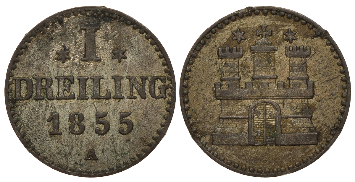 Гамбург 1 дрейлинг 1855 А KM 275 серебро 00-000-00