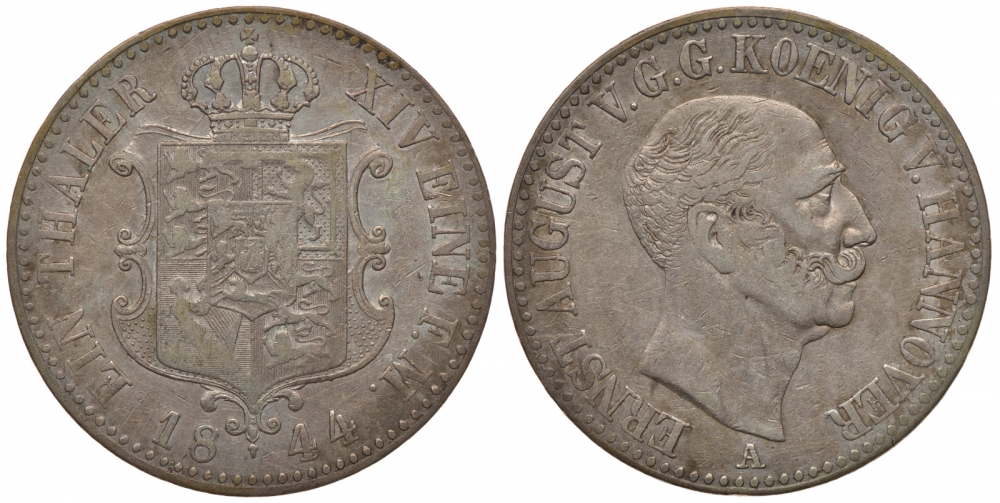 -Брауншвейг-Каленберг-Ганновер 1 талер 1844 A, Эрнст Август (1837-1851) КМ 197.1, Jaeger 69, Thun 164, AKS 105, Kahnt 232 серебро 00-809-29Другие землиАнгальт - AnhaltСаксен-Кобург-Гота - Sachsen-Coburg-GothaЮлих-Берг - JulichbergЭйхштадт - EichstattШтольберг - StolbergШпеер - SpeyerШварцбург - SchwarzburgШамбург - SchaumburgФранкфурт - FrankfurtСоест - SoestСилезия - SchlesienСаксония - SachsenБерг - BergПадерборн - PaderbornШаумбург - SchaumburgИзенбург - IsenburgПомерания - PommernМайнц - MainzОснабрюк - OsnabruckЭмден - EmdenЭрфурт - ErfurtАхен - AachenВисмар - WismarВид - WiedМекленбург - MecklenburgРейс - ReussГослар - GoslarАугсбург - AugsburgБавария - BayernБаден - BadenБамберг - BambergБранденбург - BrandenburgБрауншвейг - BraunschweigБремен - BremenВальдек - WaldeckВестфалия - WestfalenВормс - WormsВюртемберг - WurttembergВюрцбург - WurzburgГамбург - HamburgРосток - RostockГессен - HessenЙевер - JeverЛевенштайн - LwensteinЛиппе - LippeЛюбек - LubeckМансфельд - MansfeldМюнстер - MunsterНассау - NassauНюрнберг - NurnbergОльденбург - OldenburgПруссия - PreussenПфальц - PfalzРегенсбург - Regensburg