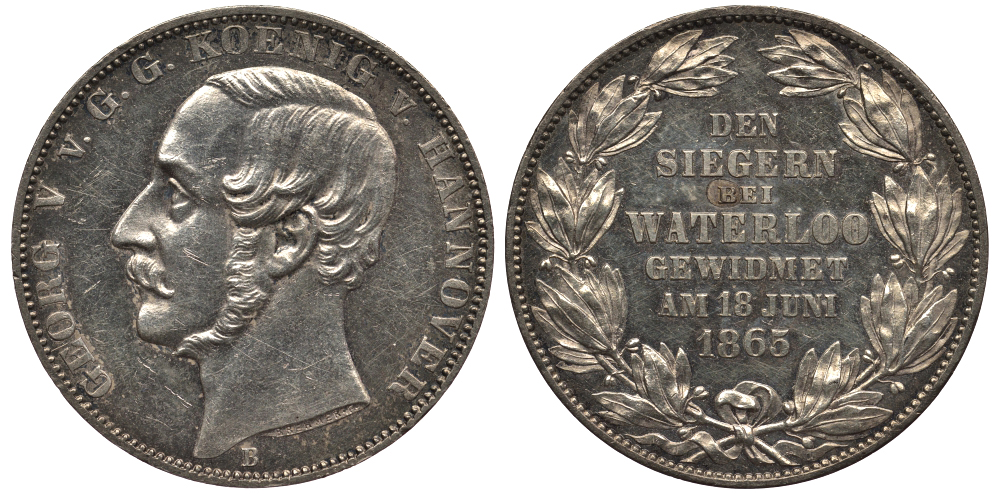 -Брауншвейг-Каленберг-Ганновер 1 талер 1865 50 лет битве при Ватерлоо, монета для ветеранов KM 241, AKS. 160, Dav. 684, Kahnt 240, Thun 176 серебро 00-817-67Другие землиАнгальт - AnhaltСаксен-Кобург-Гота - Sachsen-Coburg-GothaЮлих-Берг - JulichbergЭйхштадт - EichstattШтольберг - StolbergШпеер - SpeyerШварцбург - SchwarzburgШамбург - SchaumburgФранкфурт - FrankfurtСоест - SoestСилезия - SchlesienСаксония - SachsenБерг - BergПадерборн - PaderbornШаумбург - SchaumburgИзенбург - IsenburgПомерания - PommernМайнц - MainzОснабрюк - OsnabruckЭмден - EmdenЭрфурт - ErfurtАхен - AachenВисмар - WismarВид - WiedМекленбург - MecklenburgРейс - ReussГослар - GoslarАугсбург - AugsburgБавария - BayernБаден - BadenБамберг - BambergБранденбург - BrandenburgБрауншвейг - BraunschweigБремен - BremenВальдек - WaldeckВестфалия - WestfalenВормс - WormsВюртемберг - WurttembergВюрцбург - WurzburgГамбург - HamburgРосток - RostockГессен - HessenЙевер - JeverЛевенштайн - LwensteinЛиппе - LippeЛюбек - LubeckМансфельд - MansfeldМюнстер - MunsterНассау - NassauНюрнберг - NurnbergОльденбург - OldenburgПруссия - PreussenПфальц - PfalzРегенсбург - Regensburg