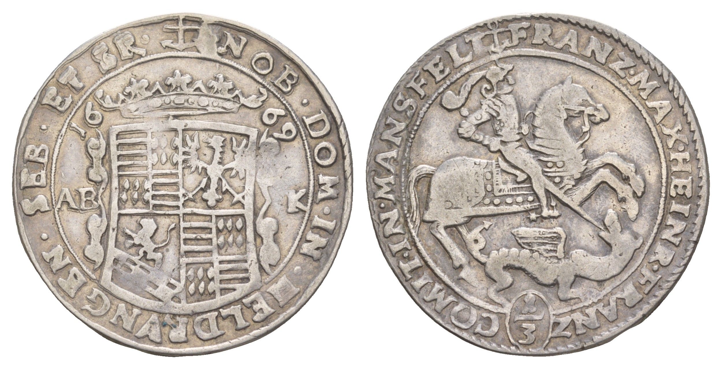Мансфельд-Эйслебен 1/3 талера 1669 ABK, Иоганн Георг III KM 67 серебро 5010-1412