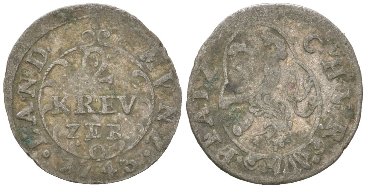 Пфальц 2 крейцера 1745 KM 306 серебро 4615-833