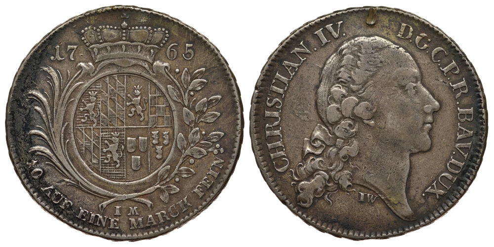 Пфальц-Биркенфельд-Цвейбрюккен 1 талер 1765 IM, Кристиан IV KM 47, Dav. 2552 серебро 00-809-24