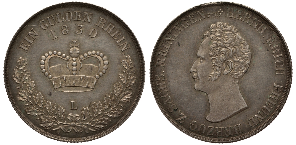 Саксен-Майнинген 1 гульден 1830 Jaeger 425, AKS 186 серебро aUNC 00-815-49