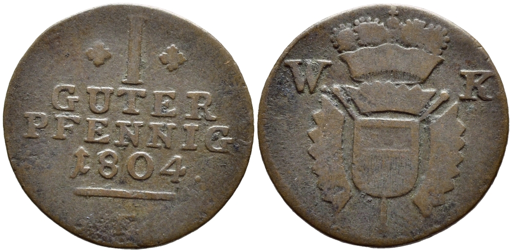 Шаумбург-Гессен 1 пфенниг 1804 F KM 4 медь 261-1116