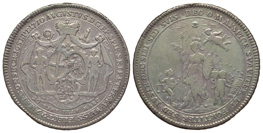 Шпеер 1 талер 1770 AS, восшествие на престол Августа Филиппа KM 12, Dav. 2788 серебро 00-809-05