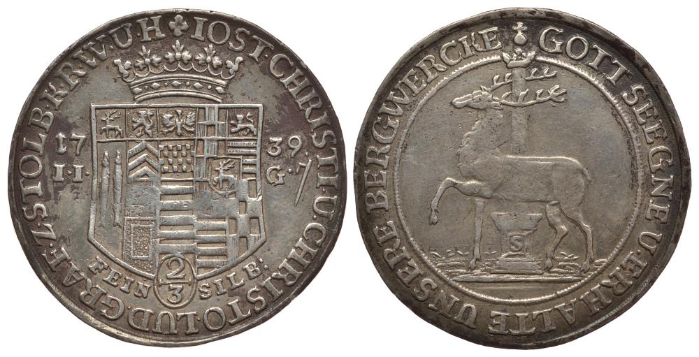 Штольберг-Штольберг 2/3 талера 1739 IIG KM 13 серебро 00-815-64
