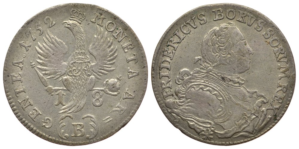 Силезия 18 крейцеров 1752 B KM 32.1 серебро 00-810-72