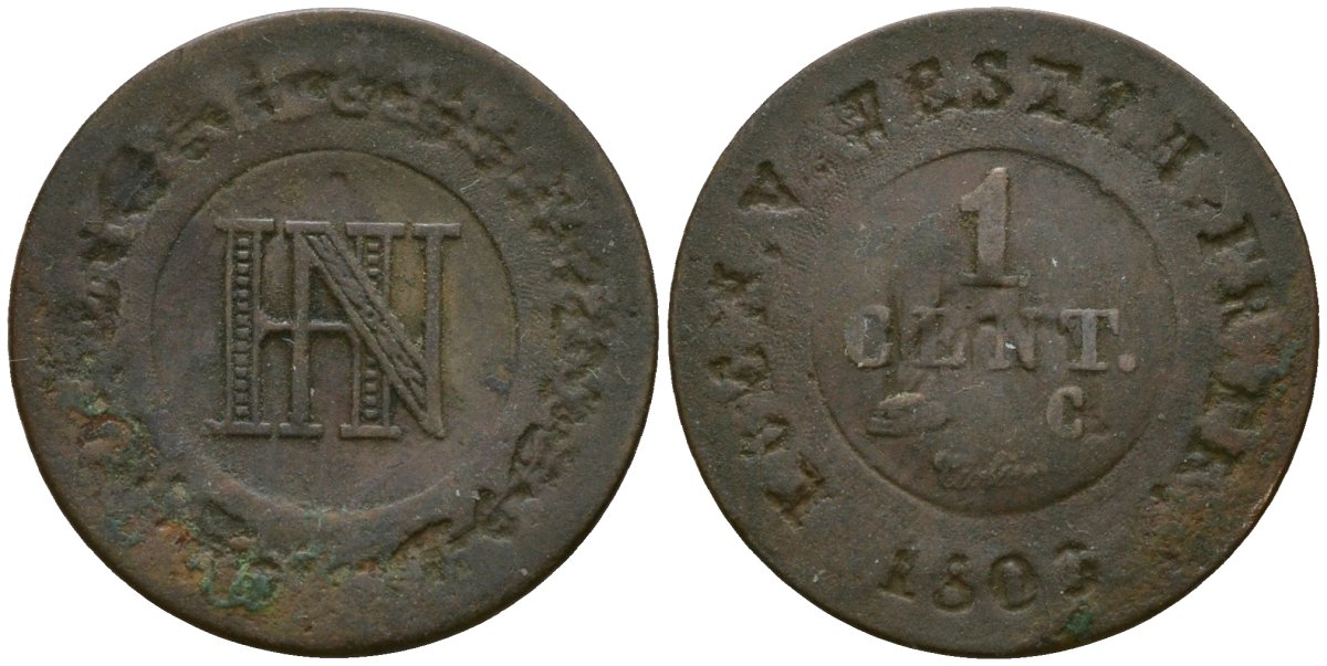 Вестфалия 1 сантим 1809 KM 107 медь 46-938
