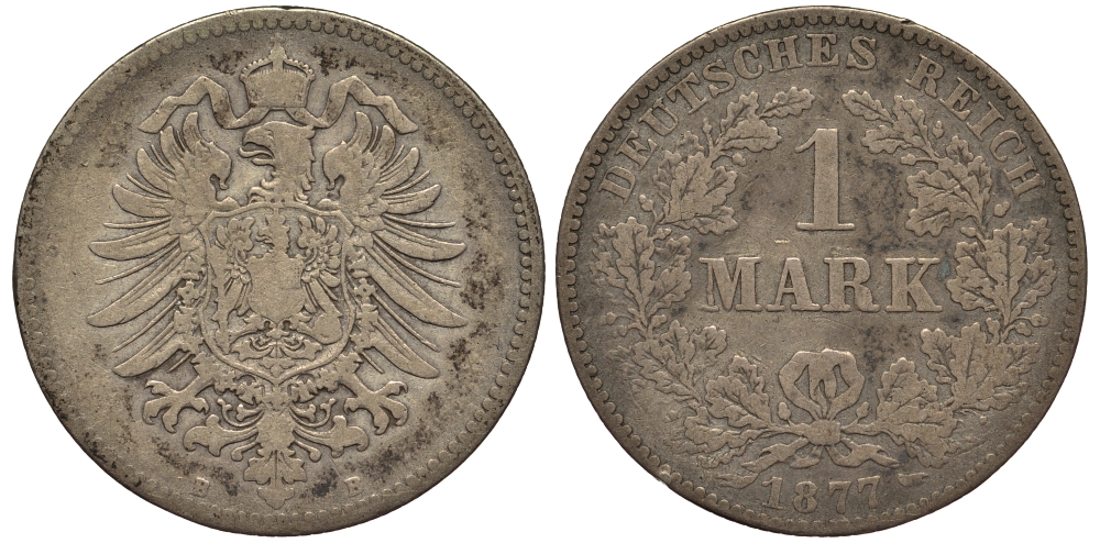 -Германия 1 марка 1877 B Weege 17, J. 9, KM 7 серебро 413-5944Пруссия - PreussenразноеРейс - ReussСаксен-Алтенбург - Sachsen-AltenburgСаксен-Веймар-Айзенах - Sachsen-Weimar-EisenachСаксен-Кобург-Гота - Sachsen-Coburg-GothaСаксен-Майнинген - Sachsen-MeiningenСаксония - SachsenШаумбург-Липпе - Schaumburg-LippeШварцбург - SchwarzburgАнгальт - AnhaltМекленбург-СтрелицОльденбург - OldenburgМекленбург-Шверин - Meklenburg-SchwerinЛюбек - LubeckЛиппе - LippeГессен - HessenГамбург - HamburgВюртемберг - WurttembergБремен - BremenБрауншвейг-Люнебург - Braunschweig-LuneburgБаден - BadenБавария - Bayren