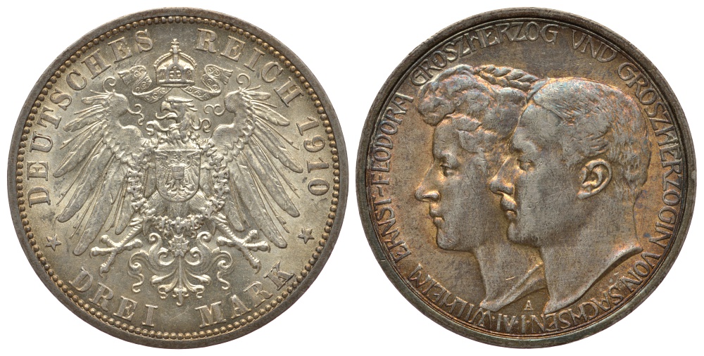 -Саксен-Веймар-Эйзенах 3 марки 1910 A, на вторую свадьбу Вильгельма Эрнста и Феодоры Weege 158, J. 162, KM 176 серебро 00-812-03Пруссия - PreussenразноеРейс - ReussСаксен-Алтенбург - Sachsen-AltenburgСаксен-Кобург-Гота - Sachsen-Coburg-GothaСаксен-Майнинген - Sachsen-MeiningenСаксония - SachsenШаумбург-Липпе - Schaumburg-LippeШварцбург - SchwarzburgАнгальт - AnhaltМекленбург-СтрелицОльденбург - OldenburgМекленбург-Шверин - Meklenburg-SchwerinЛюбек - LubeckЛиппе - LippeГессен - HessenГамбург - HamburgВюртемберг - WurttembergБремен - BremenБрауншвейг-Люнебург - Braunschweig-LuneburgБаден - BadenБавария - BayrenОбщегерманские номиналы