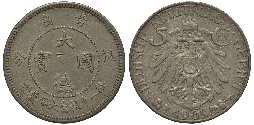 Киао-Чао (Цзяо-Чжоу (Киау-Чау)) 5 центов 1909 KM 1, J. 729 медно-никель 00-901-09