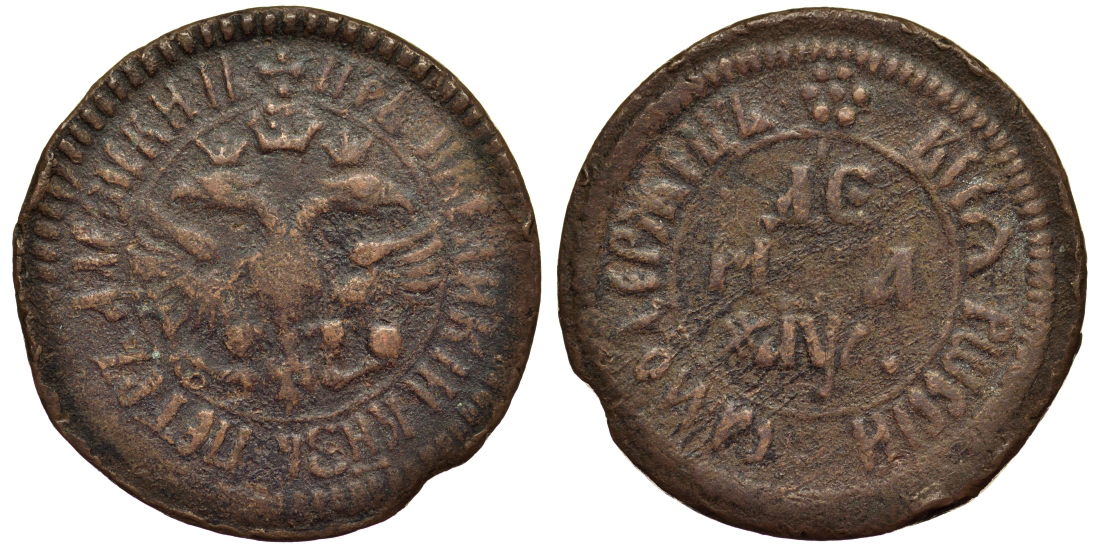 -Россия деньга 1700 Петр I, Набережный монетный двор Биткин 1408 R медь 00-818-071741-1761 Елизавета Петровна1881-1894 Александр IIIРазноеМонеты до 1700 года1895 -1917 Николай II1855-1881 Александр II1825-1855 Николай I1801-1825 Александр I1796-1801 Павел I1762-1796 Екатерина II Великая1762 (с 6 января по 28 июля) Петр III1740-1741 Иван III Антонович1730-1740 Анна Иоановна1727-1730 Петр II1725-1727 Екатерина I
