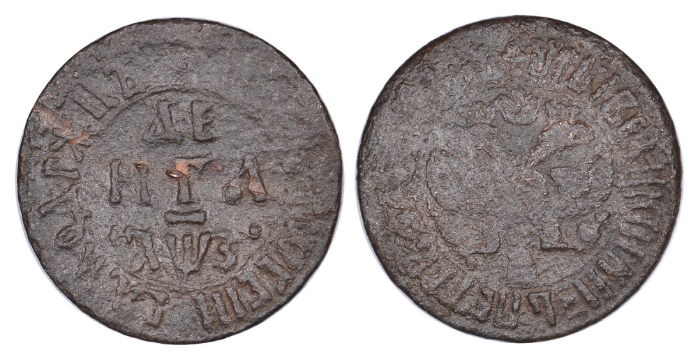 РОССИЯ ДЕНЬГА 1707 ПЕТР I, НАБЕРЕЖНЫЙ МОНЕТНЫЙ ДВОР Биткин 2742 R1 медь 633-145