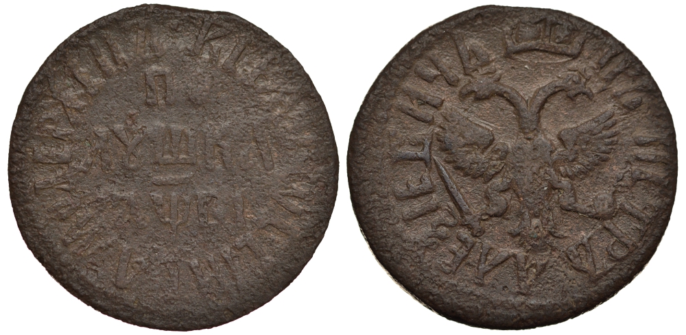 РОССИЯ ПОЛУШКА 1712 ВСЕЯ РОССИИ САМОДЕРЖЕЦЬ Биткин 2999 R медь 1517-1422